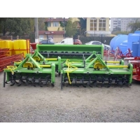 Грунтовая фреза относится к одному из самых востребованных на сегодняшний день видов навесного оборудования. Грунтофрезы могут быть горизонтальными и вертикальными с шириной захвата до 6 м. С помощью грунтофрезы осуществляют предпосевную обработку почвы после предварительной вспашки или дискования.Наиболее эффективным считается использование навесной фрезы при работах на тяжелых и труднообрабатываемых грунтах. Только лишь за один проходгрунтофреза измельчает почву, выравнивает и прикатывает верхний слой. После такой обработки можно сеять различные овощи, рапс и злаковые культуры. Для повышения производительности вспашки и обработки верхнего почвенного слоя навесная грунтофреза может применяться в комбинации с сеялкой. В результате такого прохода можно укладывать семена на хорошо подготовленную и разрыхленную почву и засыпать их слоем влажного грунта. Ширина рабочей части фрезы может быть от 1,4 до 2 м , количество зубьев от 36 до 54. Масса агрегата от 320 до 420 кг.