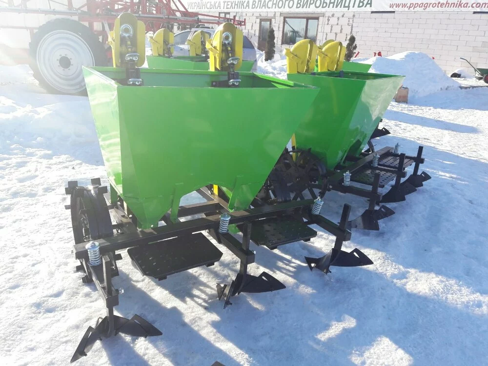 Двухрядная навесная сажалка для картофеля присоединяется к трактору при помощи заднего навесного устройства (ЗНУ). Сажалка взаимодействует с тракторами оснащёнными ЗНУ второй категории. Она выполняет все операци в одном рабочем цикле, связанным с высаживанием картофелей т.е. вспахивает борозды, автоматически высаживает картофель и окучивает землю, формируя гряды.