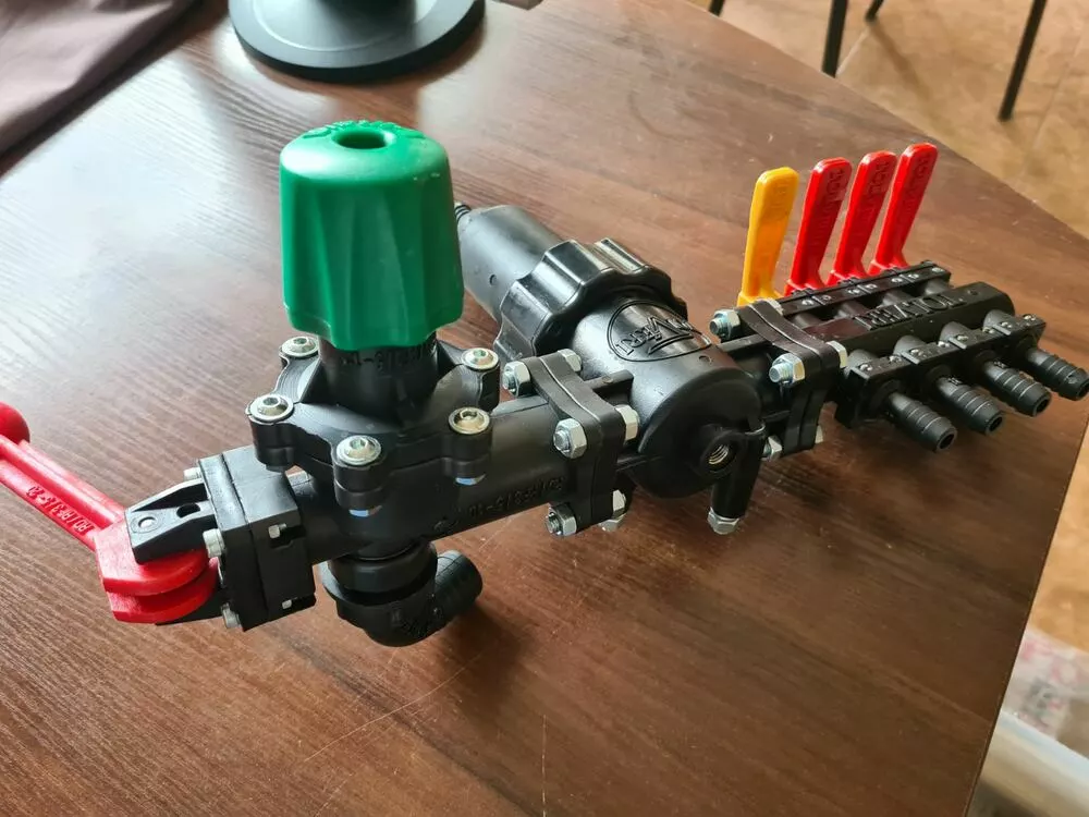 Розподільник 4х секційний на обприскувач застосовується в садових і польових обприскувачах. Завдяки важільним регуляторам можна подати рідину на певний секції для економії добрив. Інші запчастини до обприскувачів від виробника Tolmet можете придбати у нас.