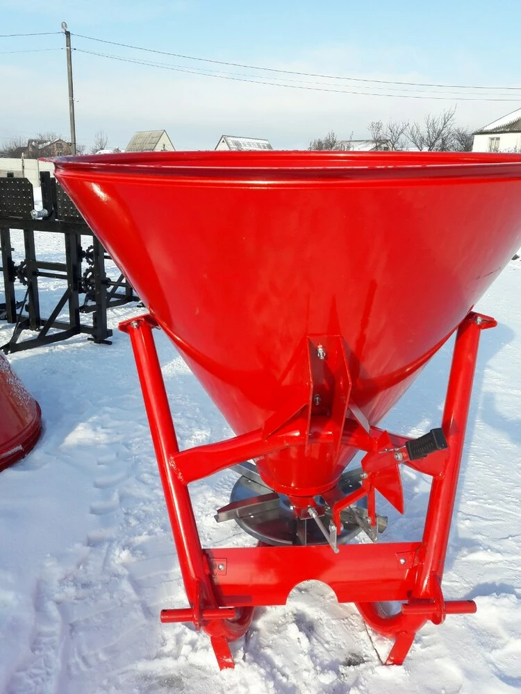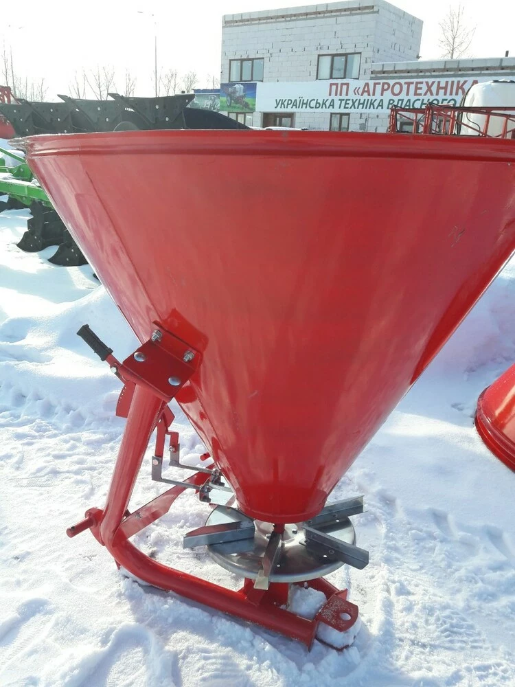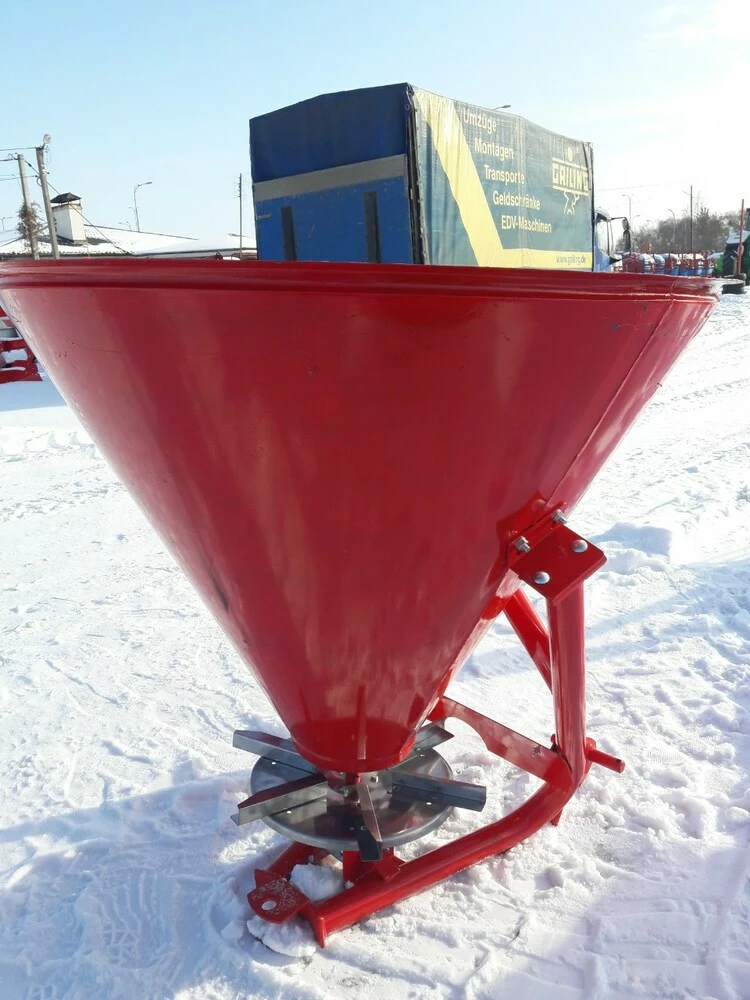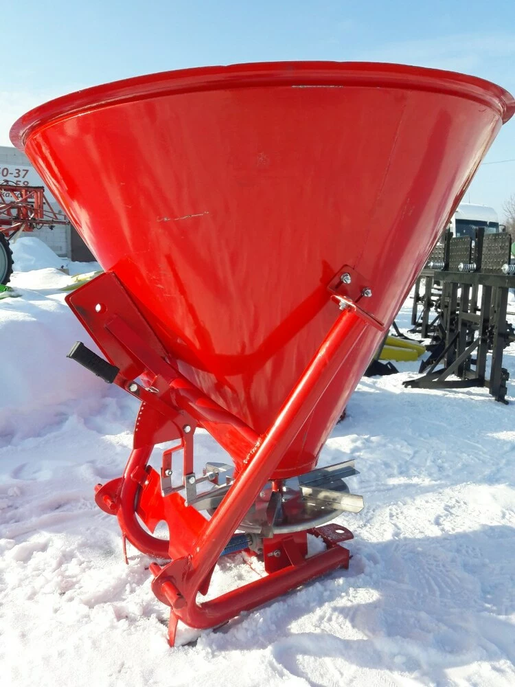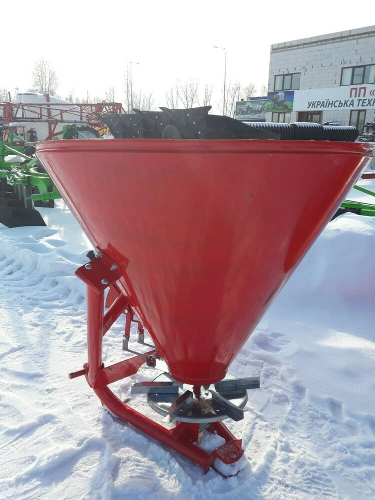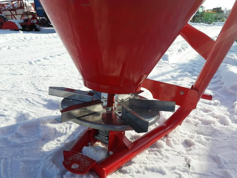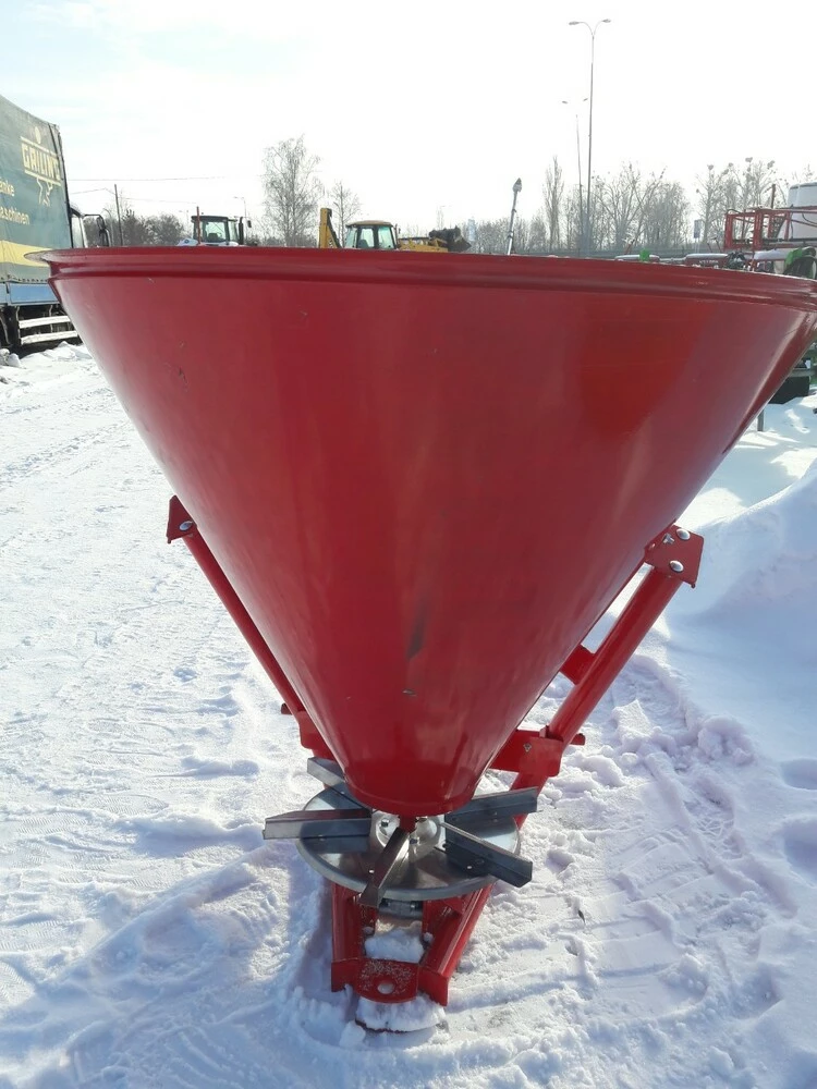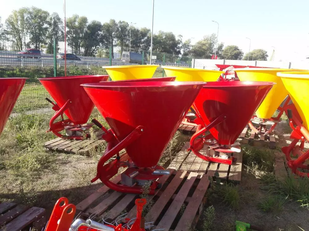 Разбрасыватель минеральных удобрений (Польша) тракторный навесной применяется для поверхностного внесения минеральных удобрений в гранулированном виде, а также для посева зерновых культур и подкормки в период вегитации, что влияет на урожайность. Загрузка машины производится в полевых условиях. Доза внесения удобрений зависит от регулирования механизма управления дозирующими заслонками и рабочей скорости движения.