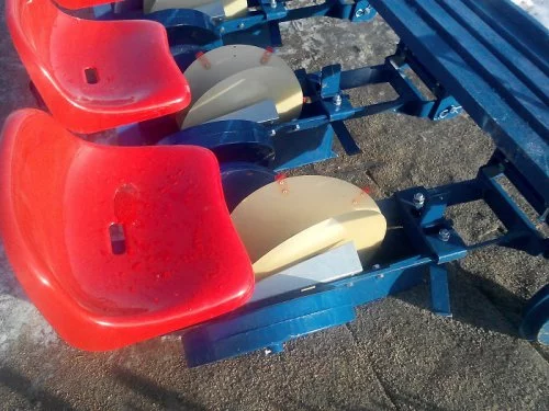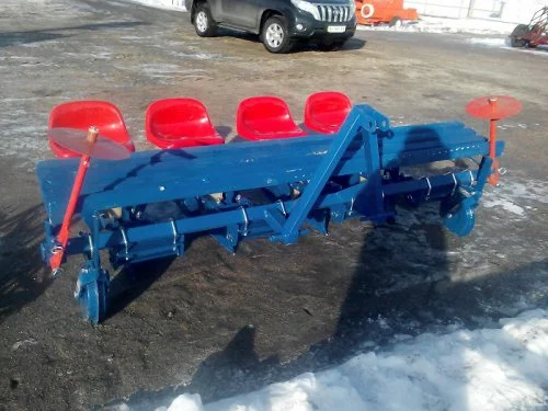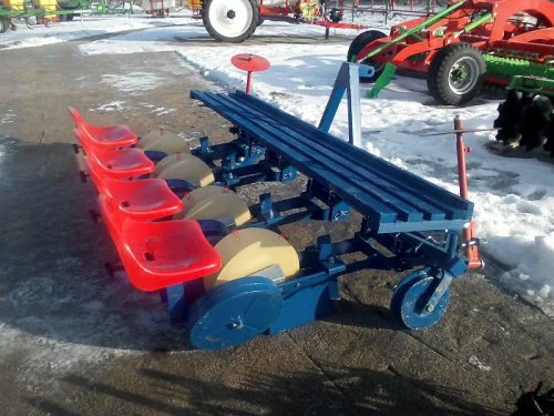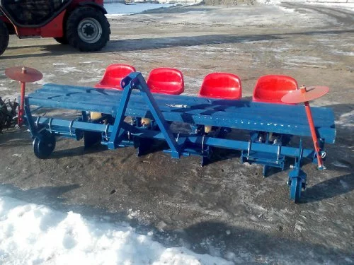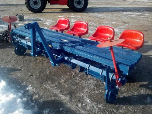 Сажалки S-240 (четырёхрядные) предназначены для высаживания всех видов розсады высотой от 6 до 20 см. при полевых и лесных работах. Простая конструкция и соответствующие материалы обеспечивают надёжную работу при простом обслуживании. Высаживание розсады можна производить на произвольно выбранных междурядиях начиная от 50-85 см. Высаживающие диски имеют на периферии отверстия через 600, 900, 1200 мм. В которых устанавливаются маркеры в зависимости от того, какое нужно расстояние между саженцами в ряде. Высаживание розсады облегчает платформа, выполненная из жести и прикреплённная к стойкам, которые в свою очередь монтируются на раме. На платформе устанавливаються ящики с розсадой. При помощи сажалок S-240, которые работают с тракторами класса 0,6 можна высаживать капусту, сельдерей, томатов, перец, клубнику, и т.д. В садоводстве и в лесном хозяйстве сажалки можна использовать для розсады кустарников и деревьев. Техническая характеристика : Способ агрегатирования - навесные, Количество рядов – 4 шт, Рабочая ширина – 2-3,40 м, Междурядная ширина – 50-85 см, Регулировка междурядной ширины – постоянная, Рабочая скорость – около 1км/час, Производительность – 2000 саженцев на один ряд за один час, Вес – 310 кгГлубина высаживания – до 25 см, Расстояние между растениями в ряде – 22-74 см, Трактор :- тип – крыловидная- ширина – 65-100 мм- регулировка глубины – постоянная, Копновозы – стержневые, Высаживающий аппарат – дисковый, Источник (Энергии) – 0,6-0,9, Обслуживающий персонал – тракторист + 4 работника, Размеры :Длина -1,50 мШирина - 2,99 м Высота - 1,0 м