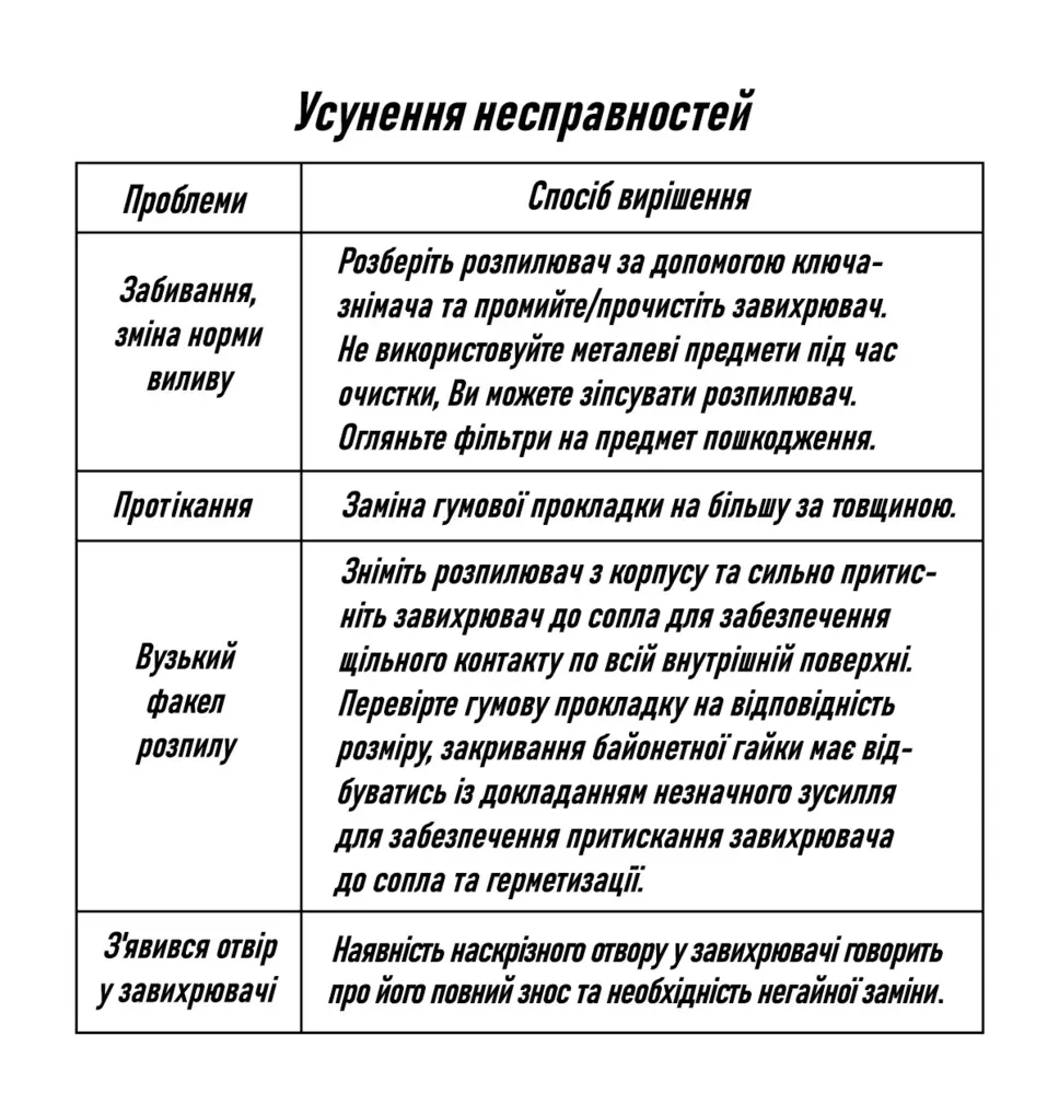 Конструкція розпилювача дозволяє уникнути додаткових витрат часу через забивання;